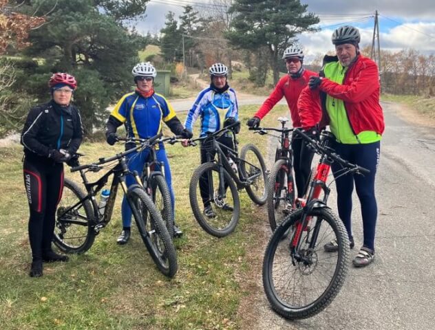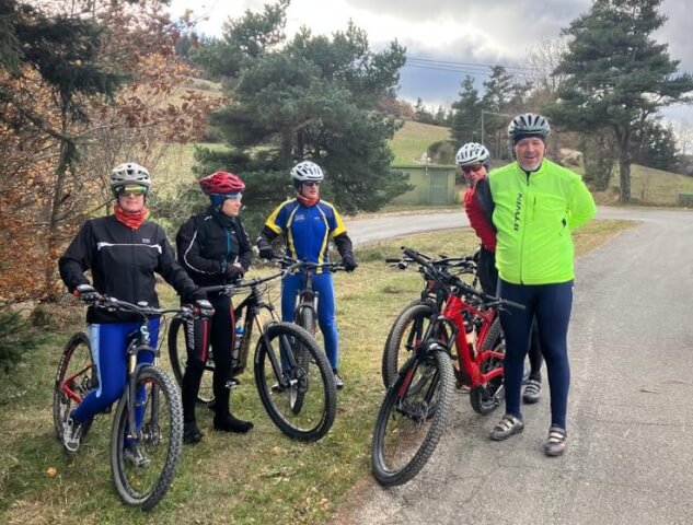 Pour le VTT Sortie organisée par Francis V. (6) Christel, Pascal, Dominique et Francis Laure et Jean-Michel partant plus tard du Chastel ont rejoint le groupe à la Bragerèsse. Francis a eu un problème de roue et est rentré au plus court. Apparamment il a fait froid sur la sortie. (vu Christel et Francis sur la photo)