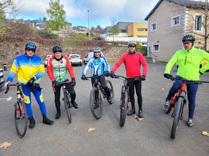 Pour la route (6) Marc, Jacques M, Jean, Bernard B, Philippe et René. Belle sortie 70 km vallée du Lot et on a poussé jusqu’au giratoire du Monastier. Nous avons retrouvé René sur le retour. Nous avons apprécié le retour de Jean. Sortie soutenue avec relais. Soleil, température supportable bien habillé.